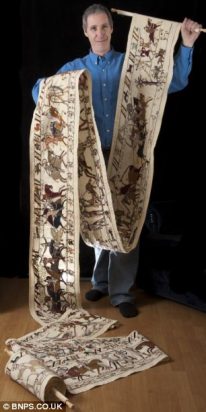 I have been looking for artisans who are doing art forms based on medieval art. It has been difficult for me to find such people, but in my research on the Bayeux Tapestry, I found an article about a man who created his own version of the Bayeux Tapestry, making a duplicate but half the size! His name is Andy Wilkinson and he is from Chatham, Kent. Here is the article about his work: http://www.dailymail.co.uk/news/article-2305699/History-fanatic-spends-18-YEARS-hand-stitching-version-Bayeux-Tapestry-40ft-long.html